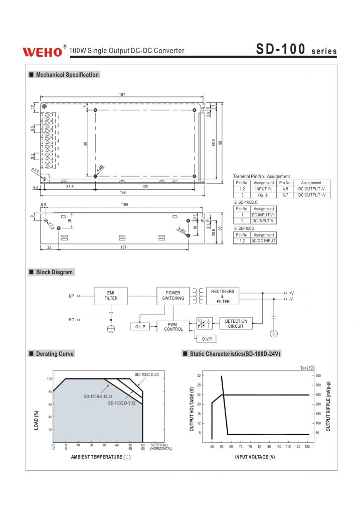Серия WEHO SD-100 представляет собой коммутационный источник питания DC-DC, который использует медные катушные трансформаторы.